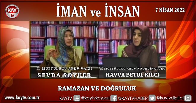 7 Nisan2022 Kay Tv İman Ve İnsan Ramazan ve Doğruluk Kayseri İl Müftülüğü ARDV Koordinatörü Havva Betül Kilci Kayseri İl Müftülüğü ARDV Vaizi Sevda Soyuer